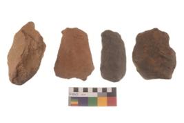 | Description / विवरण | There are n 4 flakes tool; there are large flakes with sides trimmed, Marks of secondary flaking are present on the both the faces.The dorsal is relatively flat. |