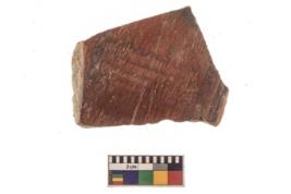 | Description / विवरण | Specimen of black on red ware with black decorative Horizontal lines geometric painting. |