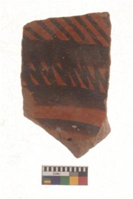 | Description / विवरण | Specimen of red on red ware with black decorative Horizontal bands with parallel lines in between geometric painting. |