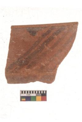 | Description / विवरण | Specimen of red on red ware with black decorative Parallel lines geometric painting. |