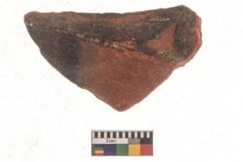 | Description / विवरण | Specimen of red on red ware with black decorative Joined curved lines geometric painting. |