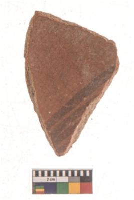 | Description / विवरण | Specimen of black on red ware with black decorative Parallel lines geometric painting. |