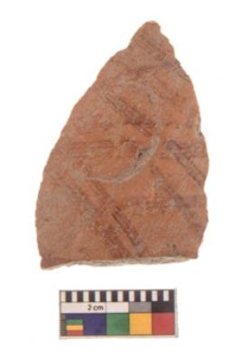 | Description / विवरण | Specimen of black on red ware with black decorative Lattice design geometric painting. |