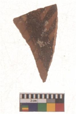 | Description / विवरण | Specimen of black on red ware with black decorative Leaf design geometric painting. |