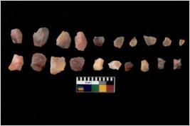| Description / विवरण | Specimen of flakes Chips with prominent flaking marks. It made up of a short flakes with sides trimmed. |