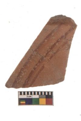 | Description / विवरण | Specimen of red ware with black decorative Parallel lines geometric painting. |