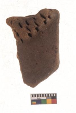 | Description / विवरण | Specimen of red ware with decorative incisions Small parallel incisions on the rim . |