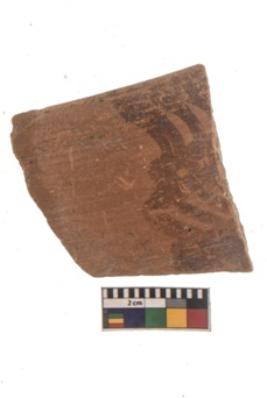 | Description / विवरण | Specimen of red ware with black decorative Wavy lines geometric painting. |