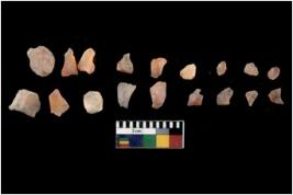 | Description / विवरण | Specimen of flakes Chips with prominent flaking marks. It made up of a short flakes with sides trimmed. |