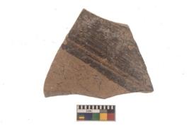 | Description / विवरण | Specimen of red ware with black decorative Horizontal lines geometric painting. |