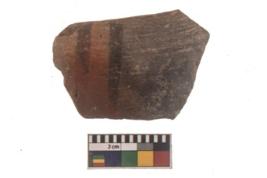 | Description / विवरण | Specimen of black on red ware with black decorative Vertical lines geometric painting. |