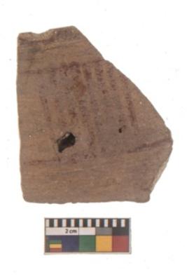 | Description / विवरण | Specimen of red ware with black decorative Vertical lines geometric painting. |