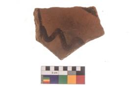 | Description / विवरण | Specimen of black on red ware with black decorative Wavy lines geometric painting. |