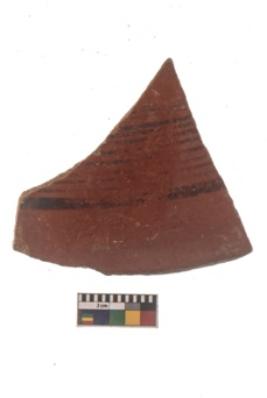 | Description / विवरण | Specimen of black on red ware with black decorative Horizontal lines geometric painting. |