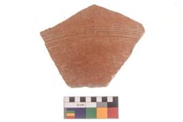 | Description / विवरण | Specimen of red ware with decorative incisions Horizontal lines . |