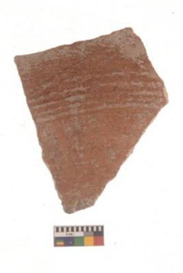| Description / विवरण | Specimen of red ware with decorative incisions Horizontal lines . |
