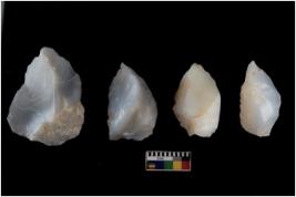 | Description / विवरण | There are n 4 flakes tool; there are large flakes with sides trimmed, Marks of secondary flaking are present on the both the faces.The dorsal is relatively flat. |