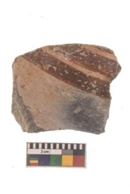 | Description / विवरण | Specimen of black on red ware with black decorative Parallel lines geometric painting. |