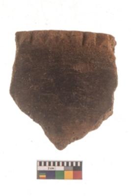 | Description / विवरण | Specimen of red ware with decorative incisions Small parallel vertical lines on the rim . |