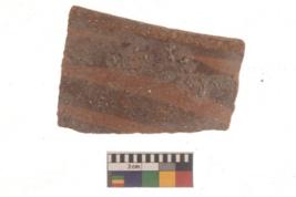 | Description / विवरण | Specimen of black on red ware with black decorative Horizontal lines geometric painting. |