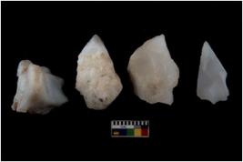 | Description / विवरण | There are n 4 flakes tool; there are large flakes with sides trimmed, Marks of secondary flaking are present on the both the faces. One is pointed functional top. |