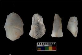| Description / विवरण | There are n 4 flakes tool; there are flakes tool with prominent flaking marks. It made up of a large flakes with sides trimmed. |