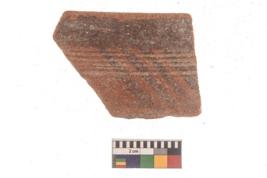 | Description / विवरण | Specimen of black on red ware with black decorative Parallel lines geometric painting. |