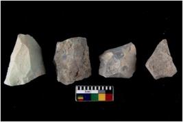 | Description / विवरण | There are n 4 flakes tool; there are flakes tool with prominent flaking marks. It made up of a large flakes with sides trimmed. It is rectangular in shaped. |