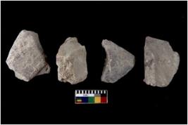 | Description / विवरण | There are n 4 flakes tool; there are multidirectional irregular scar pattern on them; made of short flakes and all four have tapering edges. |
