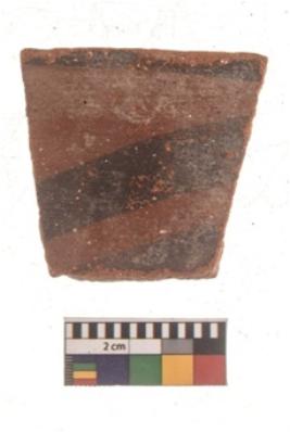 | Description / विवरण | Specimen of black on red ware with black decorative Horizontal lines geometric painting. |