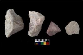 | Description / विवरण | There are n 4 flakes tool; there are multidirectional irregular scar pattern on them; made of short flakes and all four have tapering edges. |