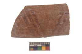 | Description / विवरण | Specimen of red ware with engraved decorative V shaped intersecting lines geometric painting. |