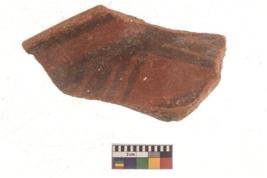 | Description / विवरण | Specimen of black on red ware with black decorative Parallel triangles geometric painting. |