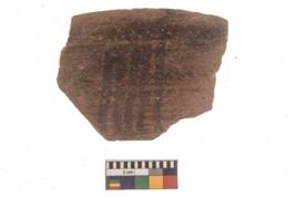 | Description / विवरण | Specimen of black on red ware with black decorative Parallel vertical lines geometric painting. |