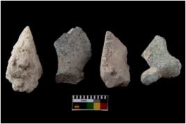 | Description / विवरण | There are n 4 flakes tool; there are multidirectional irregular scar pattern on them; made of short flakes and all four have tapering edges. |