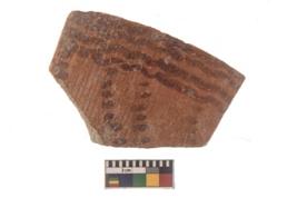 | Description / विवरण | Specimen of black on red ware with black decorative Wavy lines with slanting dotted lines below geometric painting. |