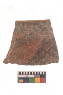 | Description / विवरण | Specimen of black on red ware with black decorative Chekered patern at the right corner geometric painting. |