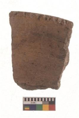 | Description / विवरण | Specimen of red ware with decorative incisions Parallel vertical lines on the rim . |