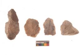 | Description / विवरण | There are n 4 flakes tool; there are large flakes with sides trimmed, Marks of secondary flaking are present on the both the faces. |