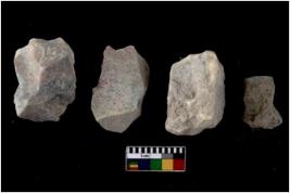 | Description / विवरण | There are n 4 flakes tool; there are multidirectional irregular scar pattern on them; made of short flakes and all four have tapering edges. |