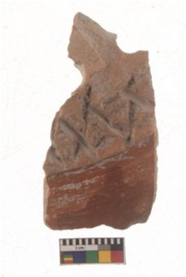 | Description / विवरण | Specimen of red ware with decorative Engraved crisscross pattern incisions. |