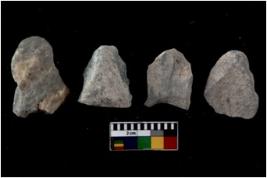 | Description / विवरण | There are n 4 flakes tool; there are flakes tool with prominent flaking marks. It made up of a large flakes with sides trimmed. It is rectangular in shaped. |
