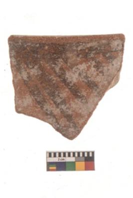 | Description / विवरण | Specimen of black on red ware with black decorative Parallel lines geometric painting. |