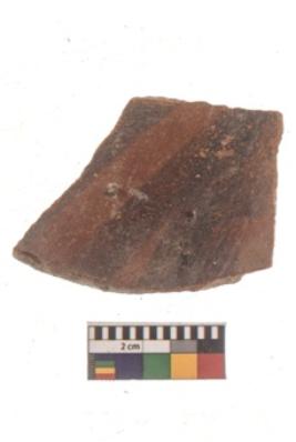 | Description / विवरण | Specimen of black on red ware with black decorative Vertical lines geometric painting. |