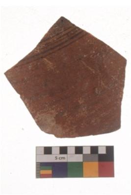 | Description / विवरण | Specimen of black on red ware with black decorative Horizontal lines geometric painting. |
