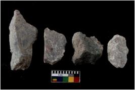 | Description / विवरण | There are n 4 flakes tool; there are large flakes with sides trimmed, Marks of secondary flaking are present on the both the faces.The dorsal is relatively flat. |