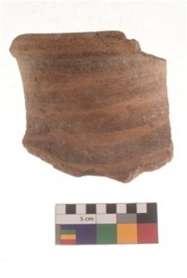 | Description / विवरण | Specimen of black on red ware with black decorative Concentric circles geometric painting. |