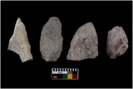 | Description / विवरण | There are n 4 flakes tool; there are large flakes with sides trimmed, Marks of secondary flaking are present on the both the faces.The dorsal is relatively flat. |