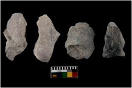 | Description / विवरण | There are n 4 flakes tool; there are multidirectional irregular scar pattern on them; made of short flakes and all four have tapering edges. |