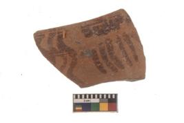 | Description / विवरण | Specimen of black on red ware with black decorative Wavy lines with small vertical strokes on the right geometric painting. |